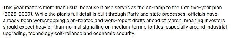著回报,本年的两会尤为关节,将为第十五个五年缱绻(2026-2030年)奠定基础。投资者应怜惜比往年更明确的政策信号,特别是在产业升级、科技自主和经济安全等限度。