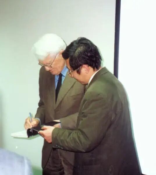 2001年4月,哈贝马斯走访上海,作家参加世纪出书集团的学术谈话会时请哈贝马斯签名