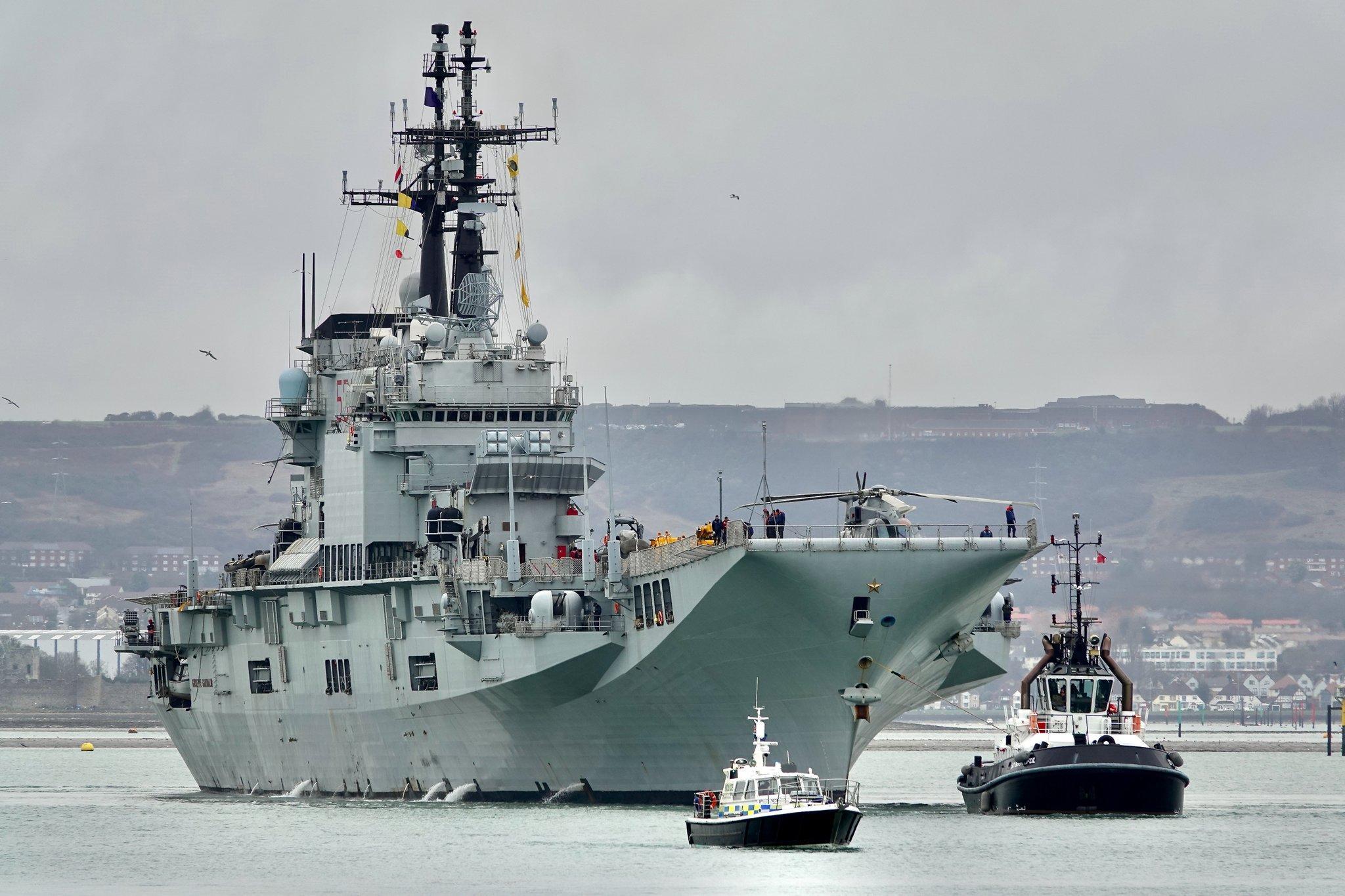 在舰载设立上,该舰想象之初便兼顾了固定翼战机与直升机的搭载智商,飞行船面与机库可左证任务需求设立16-18架舰载机,惯例部署决策为8-12架AV-8B“鹞”II垂直起降构兵机,搭配4-6架SH-3D或AW101直升机,机库可容纳12架飞机,飞行船面最多可同期部署6架。