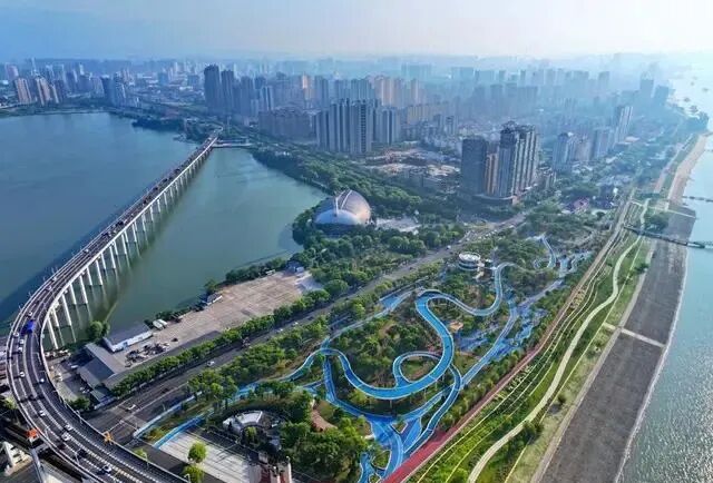 长江国度文化公园九江城区段,航说念船来船往,公园气象宜东说念主。东说念主民网 朱海鹏摄