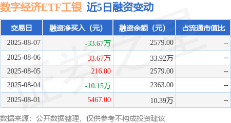 本站音问开云体育,8月7日,数字经济ETF工银(561220)融资买入45.59万元,融资偿还79.26万元,融资净卖出33.67万元,融资余额0.26万元。