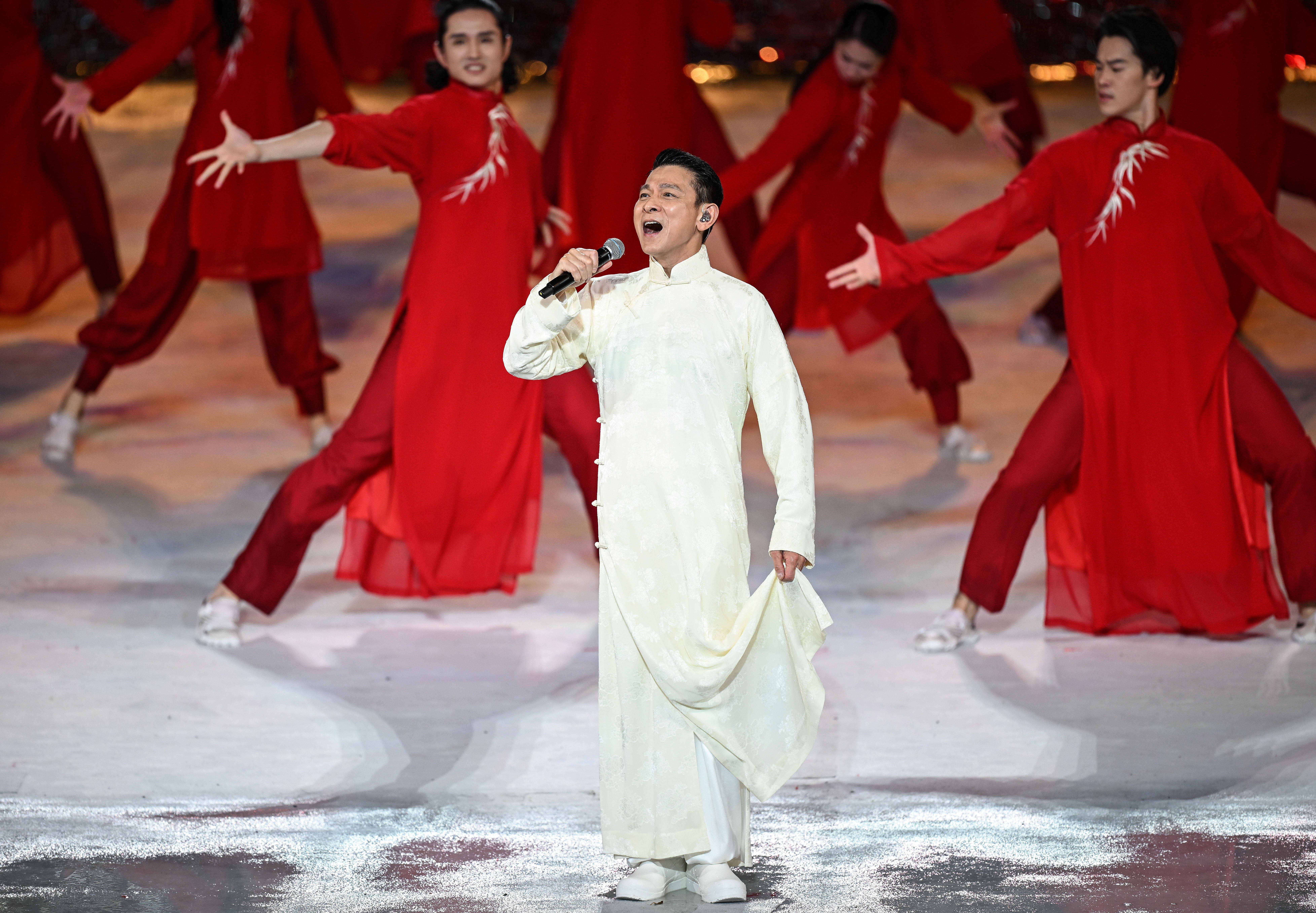 刘德华身着白色唐装,压轴唱响熟谙的旋律,让若干东谈主梦回1997。那一年,为香港转头创作的《中国东谈主》风靡寰球。